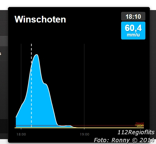 Zondagavond in een bestek van nog geen uur ontwikkelde zich forse onweer en regenbuien boven een deel van Oost Groningen. Net over de grens van Bourtange en Duitsland werd een deel van deze buien Nederland ingedreven. Na een paar hevige plensbuien in diverse dorpjes zoals Vledderhuizen, Mussel, Onstwedde, Pekela en Winschoten kwam het tot wateroverlast. In Vledderhuizen bij Ina Kruize kwam in een zeer korte tijd tot 35 mm water naar beneden (Zie foto boven). En bij Sanny in Mussel stond men in de tuin tot de enkels in het water. Door het onweer was er een blikseminslag in Onstwedde, blikseminslag in Bellingwolde aan de Bovenstreek in meterkast schade valt mee, stormschade Driepoldersweg in Wedde. Ook was de brandweer Vlagwedde onderweg naar diverse meldingen wateroverlast door wolkbreuk in o.a. Jabbingelaan te Onstwedde.